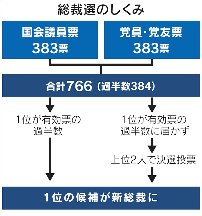 自民総裁選 9月29日投開票 議員票 党員票同数に 日本経済新聞